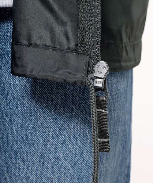 100% polyester. Concealed hood with tear release fastening tab. 2 front zipped pockets. Drawstring at bottom. Elasticated cuffs. Packs/zips into front pocket. Matching full front zip.